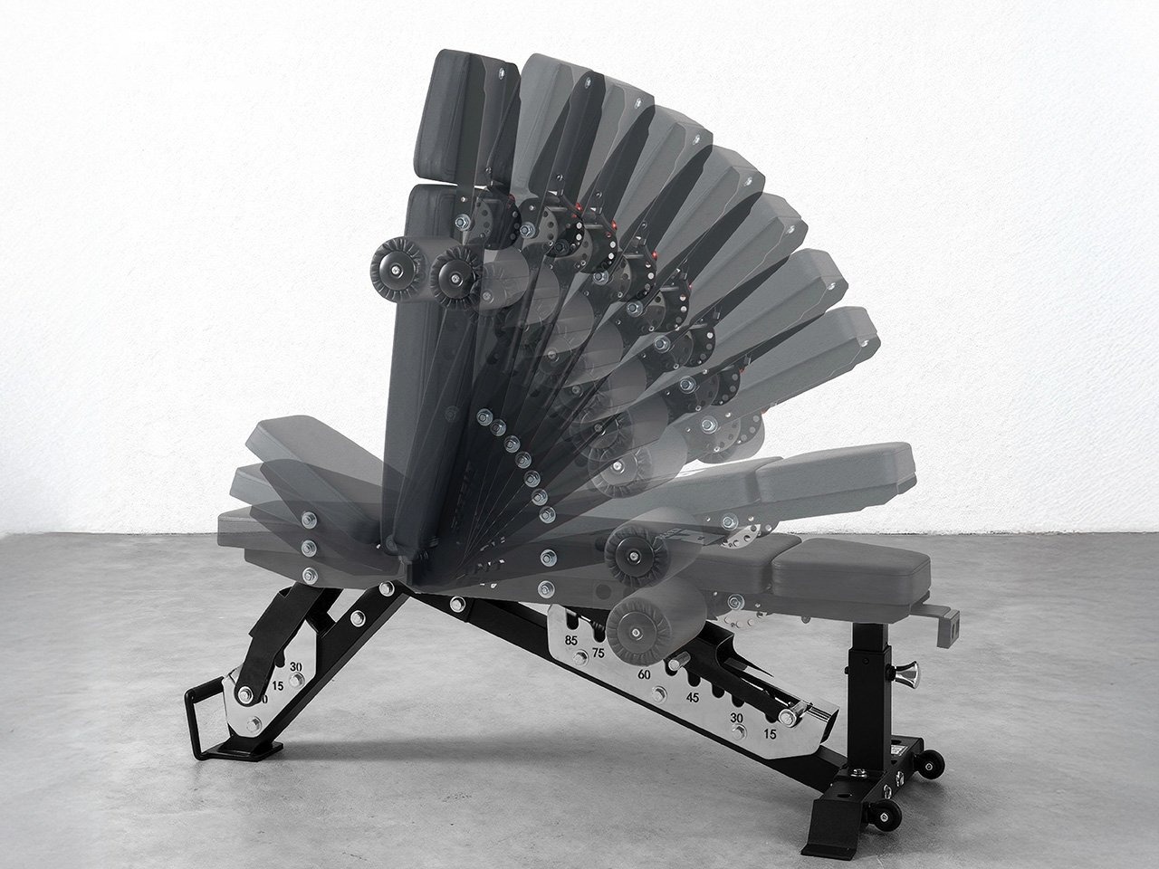 RITFIT GATOR三段式训练凳,21种角度组合(靠背/头枕/座椅/下斜),适配各类训练。加厚钢管承重1600磅,头枕单独承396磅,稳固安全。70mm泡沫+乙烯基皮坐垫舒适,封闭调节防夹。可竖立收纳省空间,哑光黑融家居。从新手到专业运动员,陪练成长,是高效家庭健身房理想之选。