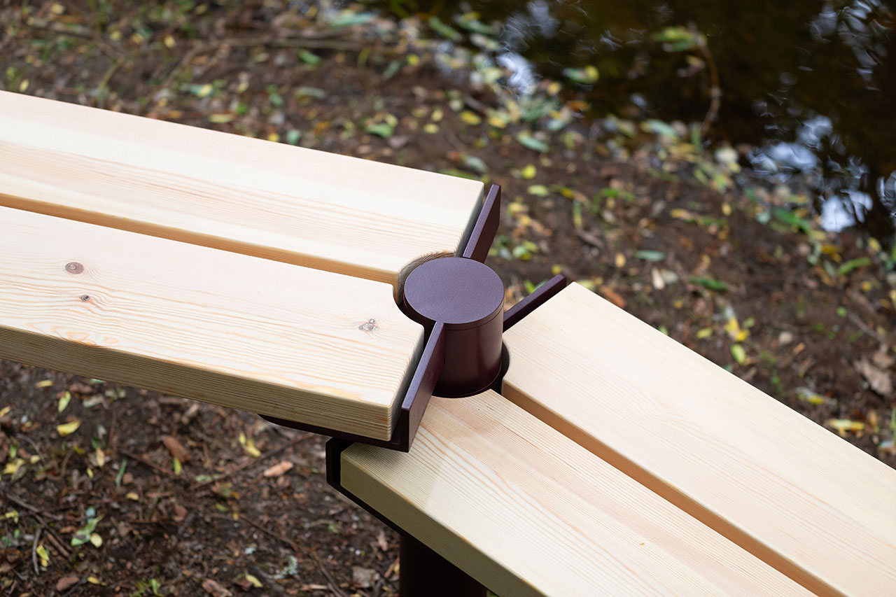 OUTSIDERS以公共座椅为媒介重思“第三空间”的当代形态。项目包含Venture与Klopp两个子系统:Venture 以弯曲与直线钢管构建开放结构,弱化朝向与边界,通过 L形布局在私密与社交之间提供弹性;Klopp借鉴“沼泽桥”逻辑,采用模块化管件与不同高度、长度组合,适配复杂地形并支持快速搭建与重复使用。两者均强调可移动性、场所适应性与循环利用,将座椅从静态设施转化为可响应环境与行为的空间介质。