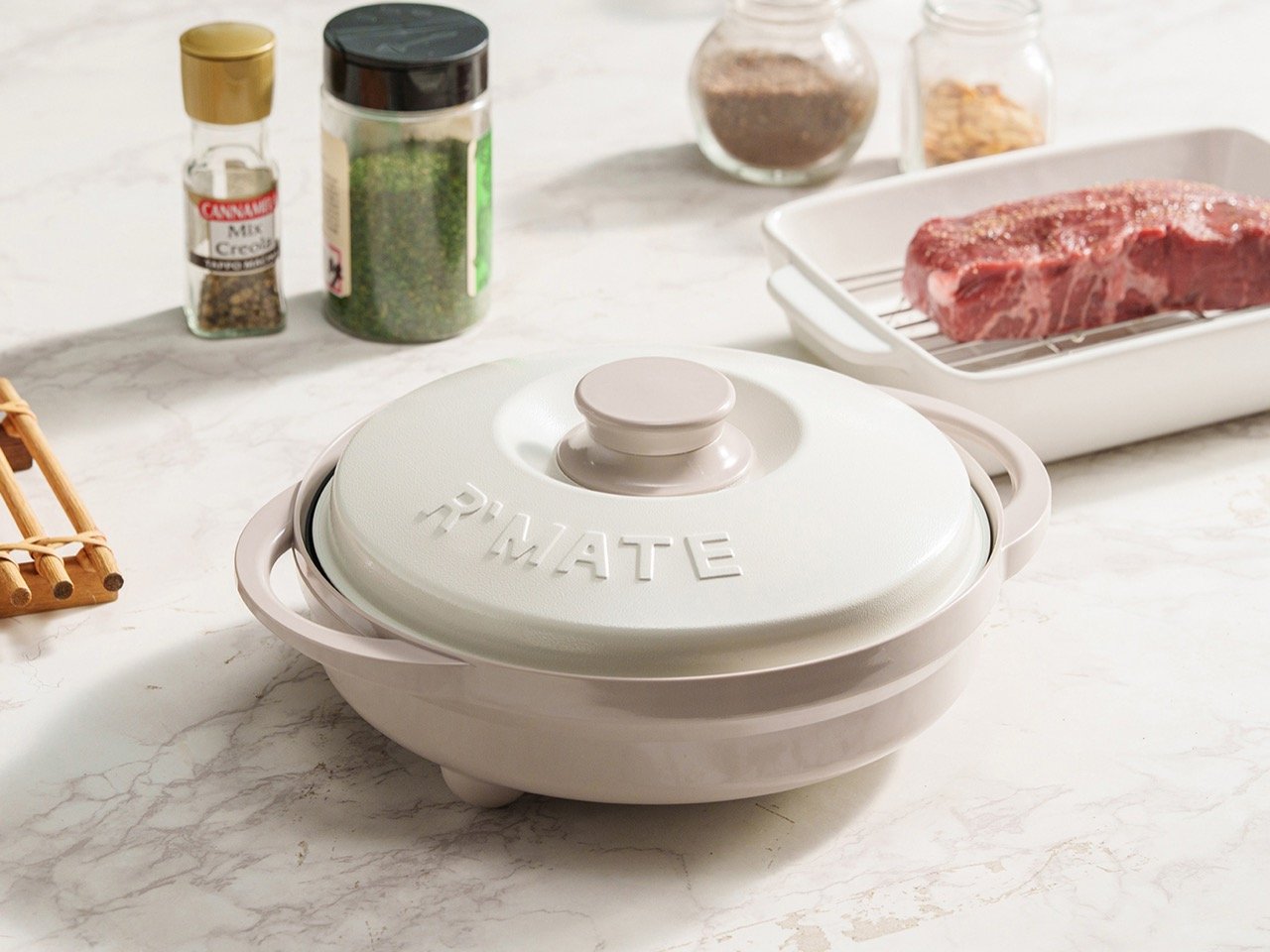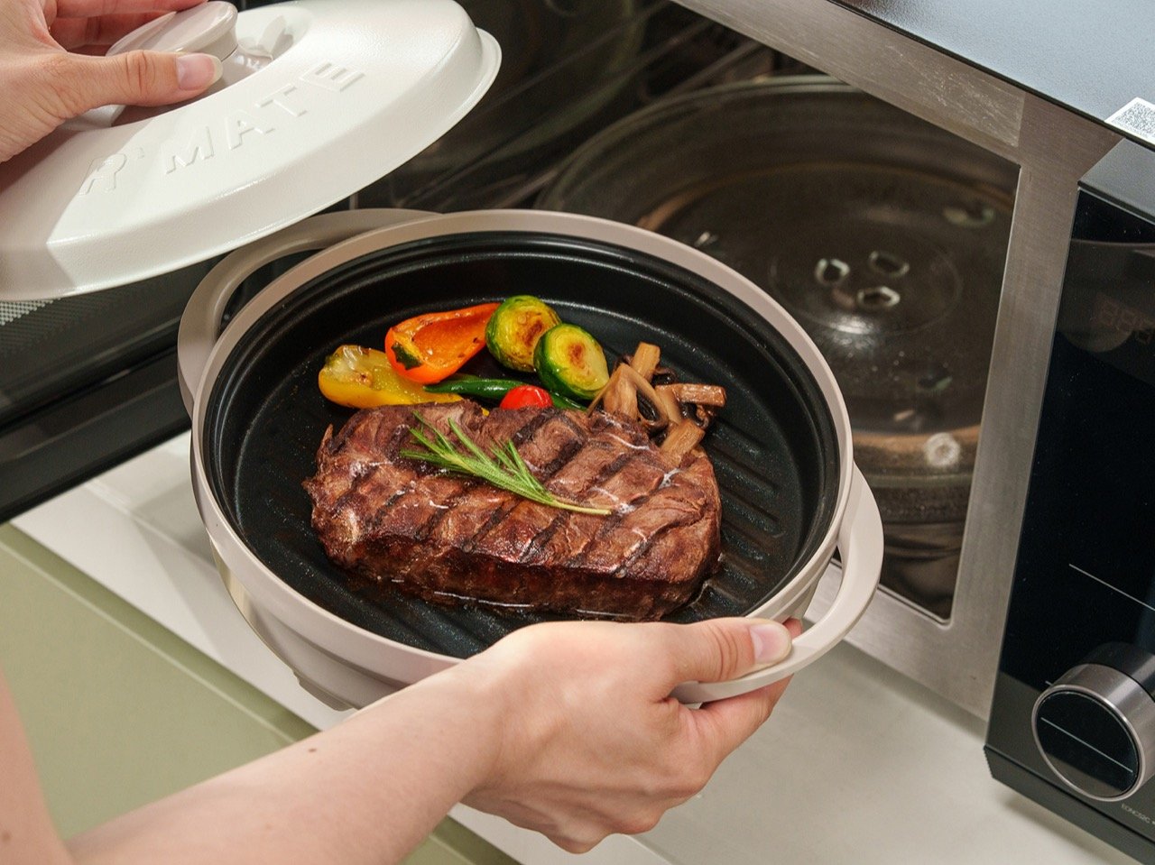 微波炉只能热饭?RANGEMATE让它秒变750°F高温烤炉。这款创新厨具由PELlyTECH设计,巧妙转化微波能量为红外热能,实现真正意义上的“烧烤式”烹饪。它采用分层结构:微波先加热底部专利导热板,再通过烤盘将高温均匀传递至食材。封闭式设计配合硅胶密封圈,锁住水分与香气,避免飞溅。上盖阻隔微波直射,让食物像在烤箱中般受热,告别内外温差。无需预热,冷冻食材直接下锅,煎牛排、烤蔬菜、做披萨都能在几分钟内完成。SBS手柄隔热安全,取出不烫手,用完可直接进洗碗机清洁。专为微波炉设计,适合小厨房、租房族或追求效率的都市人。