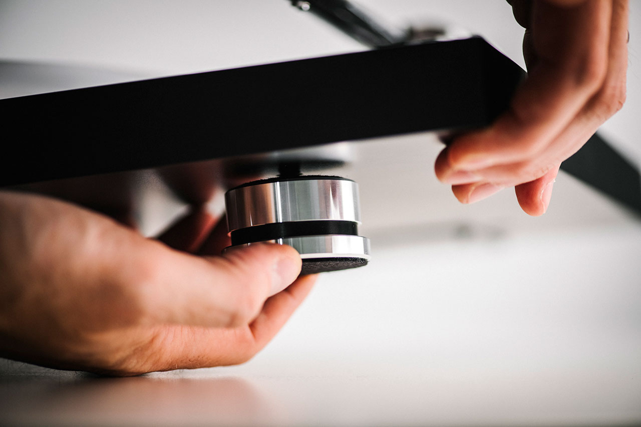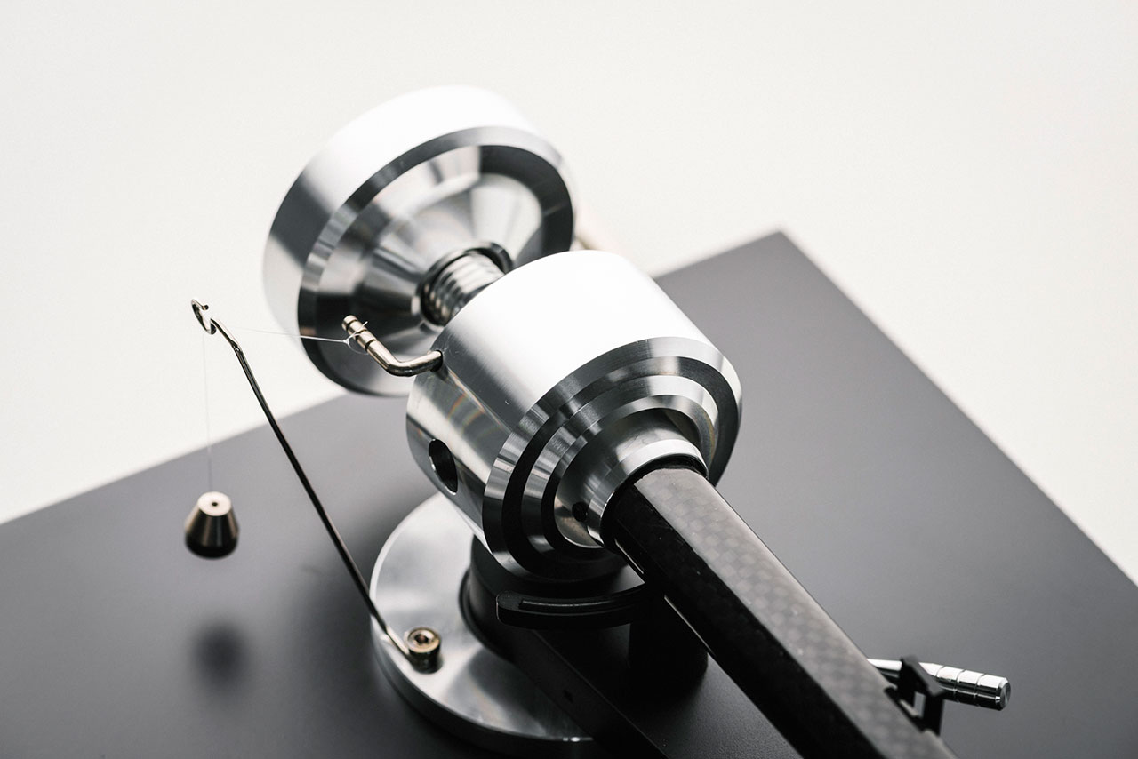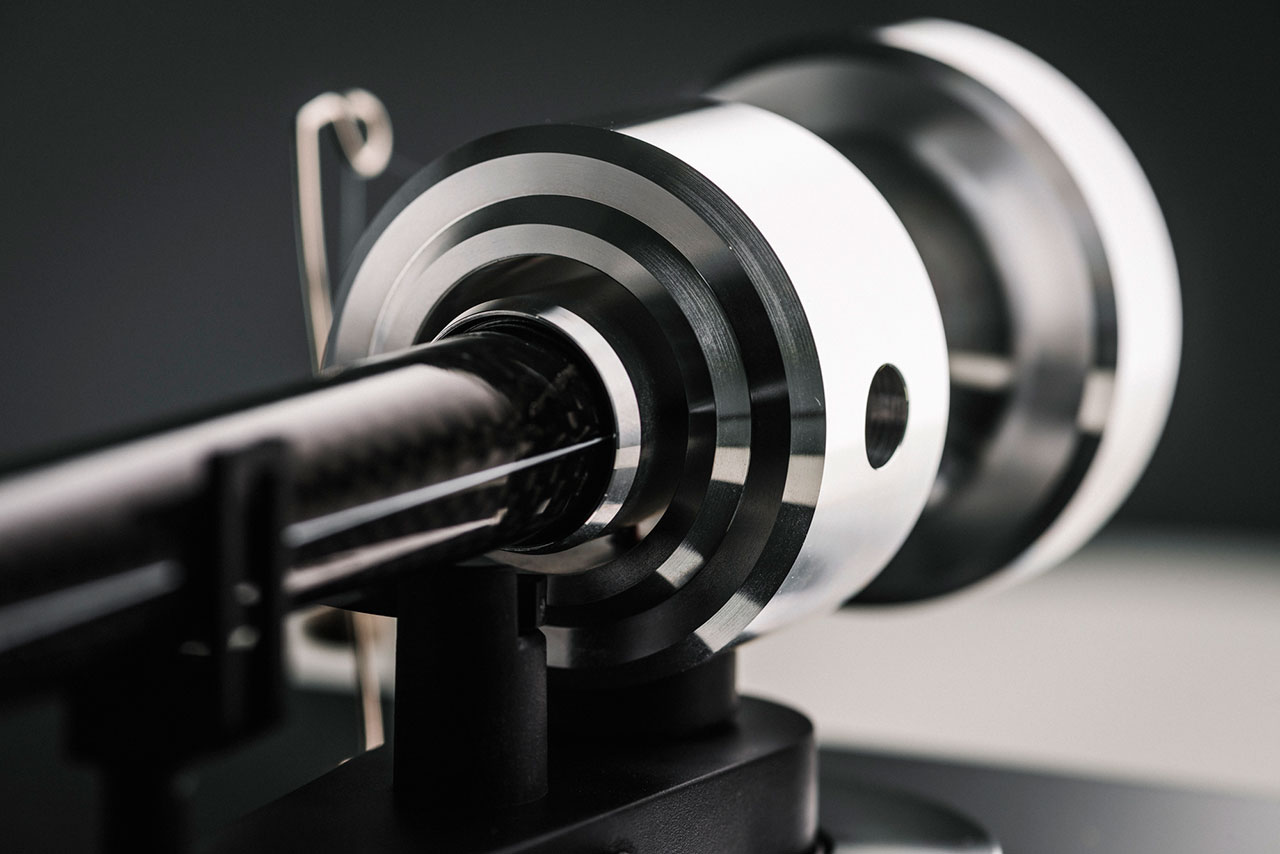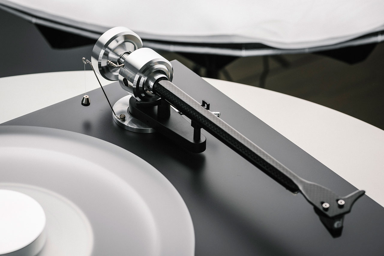 Pro-Ject Debut Reference 10唱片机延续品牌三十余年来对模拟音频的持续探索,是其首次采用碳纤维/铝合金混合唱臂的型号。产品在结构与材料上追求稳定性与低共振表现:磨砂半透明亚克力主转盘提供良好的转动惯量与视觉层次,钻石切割铝合金唱臂座兼具机械精度与工艺质感。皮带驱动结构保持简洁可靠,电子调速与迷你XLR平衡输出则体现当代使用需求。整体外观以哑光黑与亚克力饰件构成,既呼应 90 年代的理性工业设计语境,也避免复古的表层化表达。这是一款强调“操控过程”与“聆听仪式”的唱盘,而非单纯的声音输出设备。