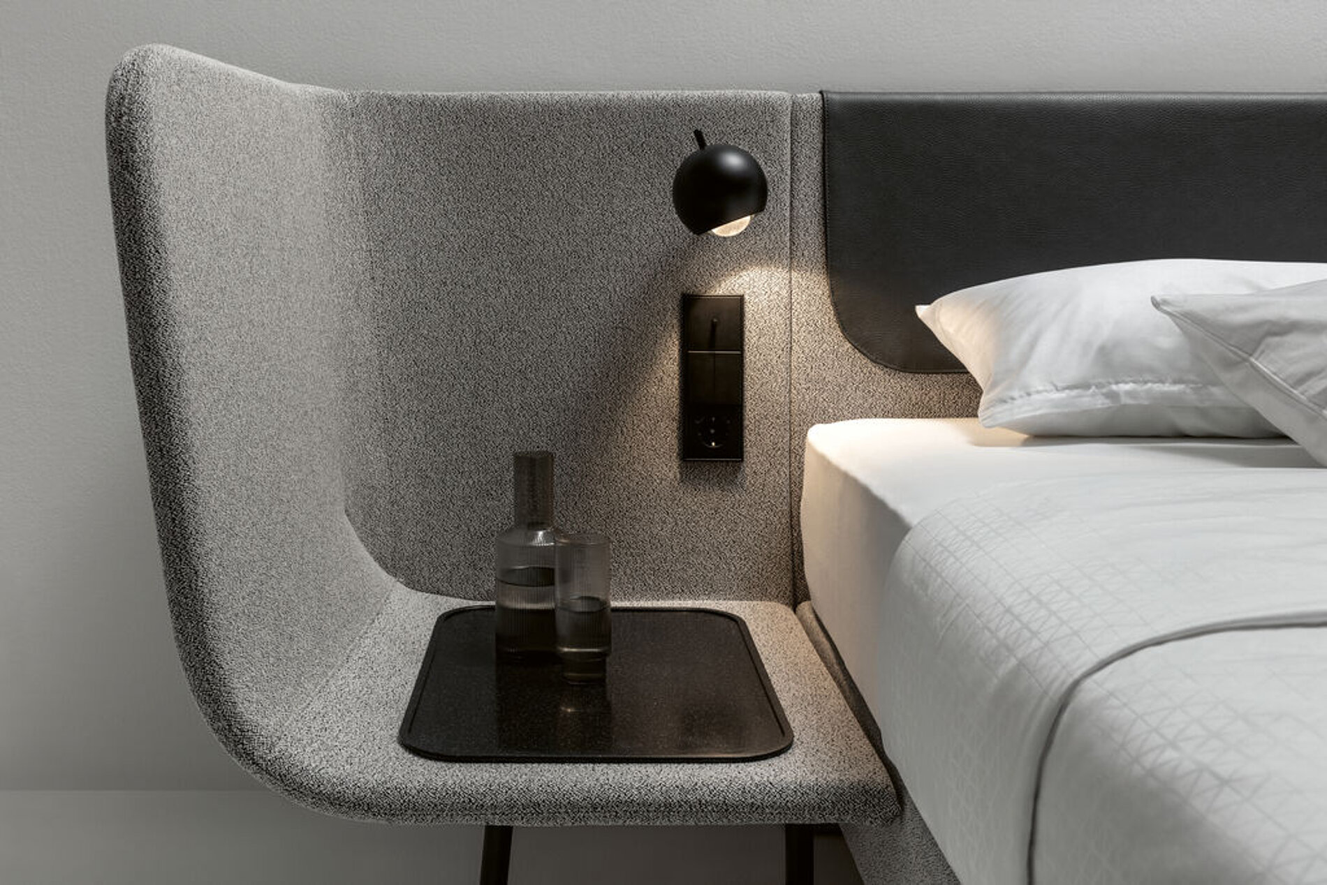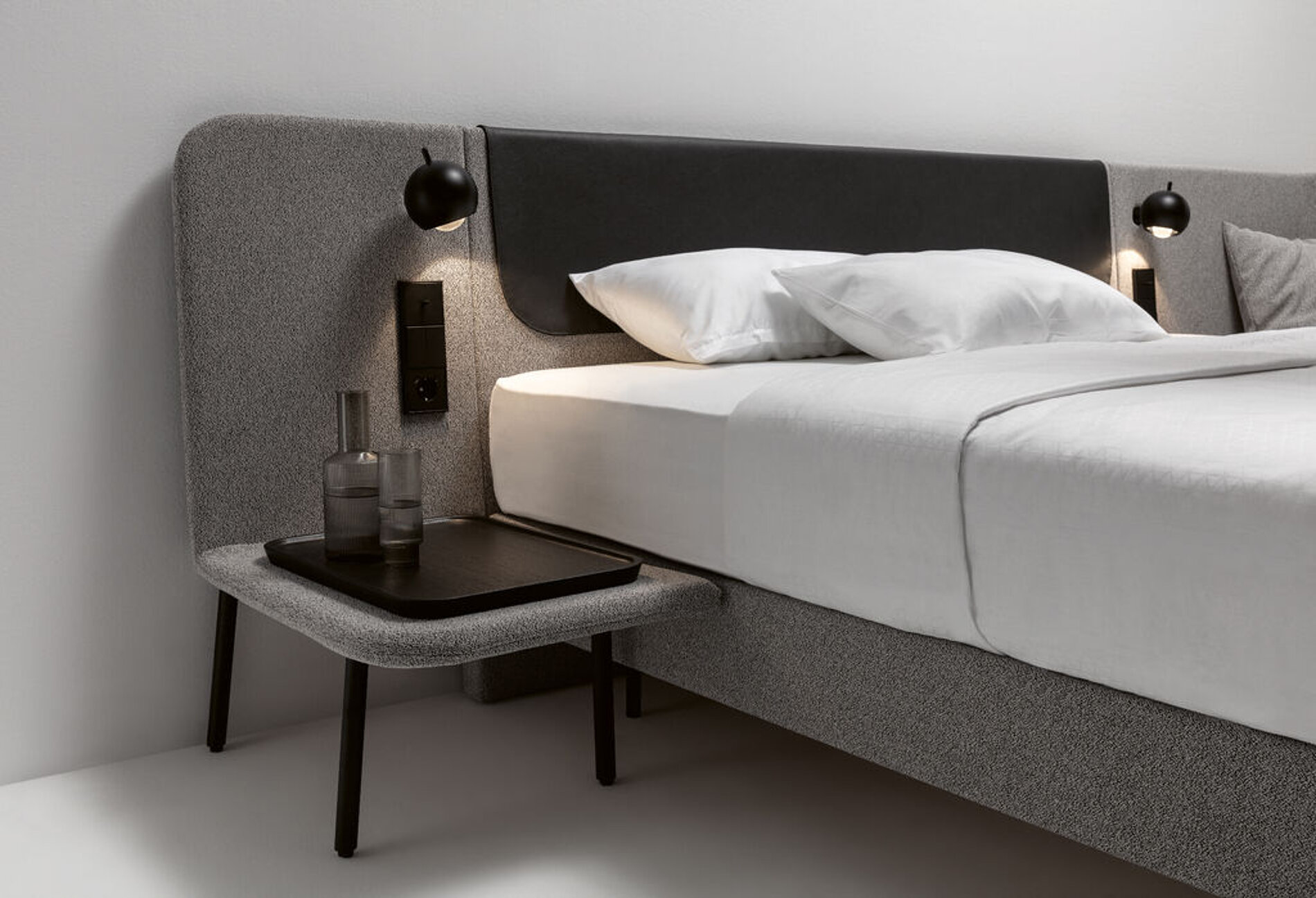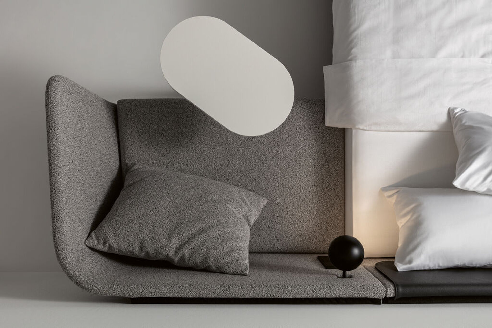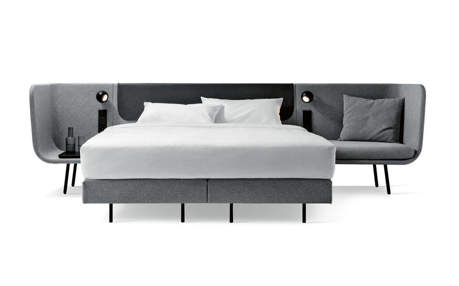XAIO 是一款将床、床头柜、置物架、座椅与照明系统整合于一体的模块化卧室解决方案。通过 160–220cm 多种宽度选择及可配置侧边模块,灵活适配不同空间与使用需求。柔软的包覆材质与圆润的侧板设计营造出温暖放松的睡眠氛围,统一而克制的配色使整体视觉更加协调。内置灯光与电源接口,提升夜间使用的便利性,减少额外家具与线缆干扰。XAIO 以“全功能一体化”为核心,重新定义高效、舒适且具有秩序感的现代卧室体验。