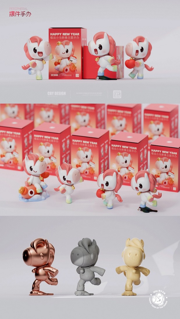 “福运小马”这款3D生肖IP形象活泼又讨喜,将马年瑞气与吉祥寓意融于形体与表情之中。它既可爱又富有文化符号感,让传统生肖在当代潮玩语境下焕发新生命力,是设计与文化结合的有趣尝试。