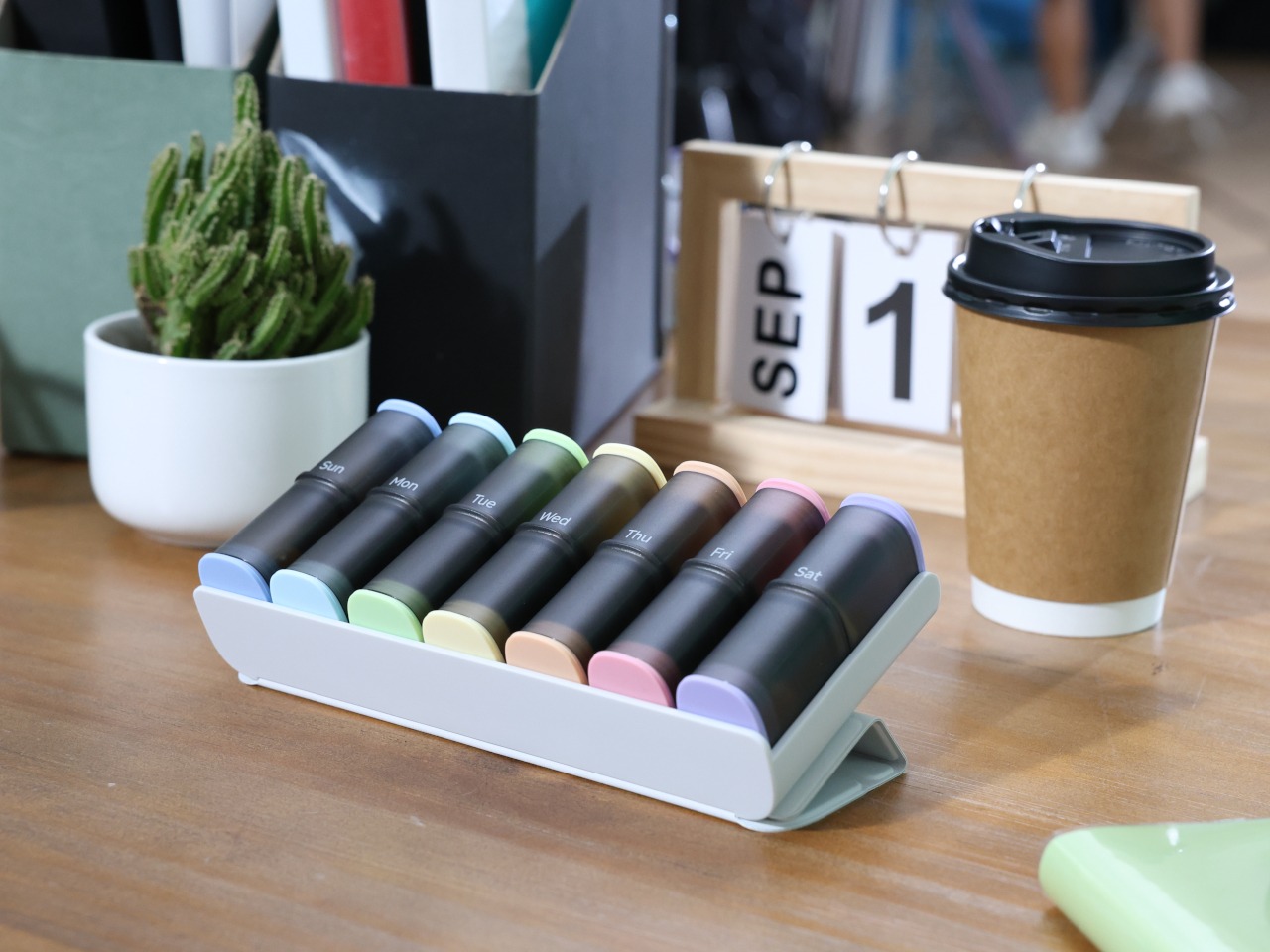 modobloom M7是一款面向日常维生素与药品管理的周计划药盒系统,试图通过可视化与生活化设计改善用药习惯。产品由七个独立磁吸式药管组成,对应一周周期,并配备可折叠收纳盒,支持台面展示与便携收纳的双重模式。药管采用Tritan材质与食品级硅胶瓶盖,兼顾安全性与耐用性,同时通过哑光表面与色彩标签提升识别效率。内部空间针对补充剂尺寸优化,避免传统药盒容量受限问题。模块化结构使整套系统可在家中组合陈列,外出时拆分携带,保持使用路径的一致性。整体设计通过材质、触感与形态弱化医疗属性,使健康管理更自然融入生活场景。