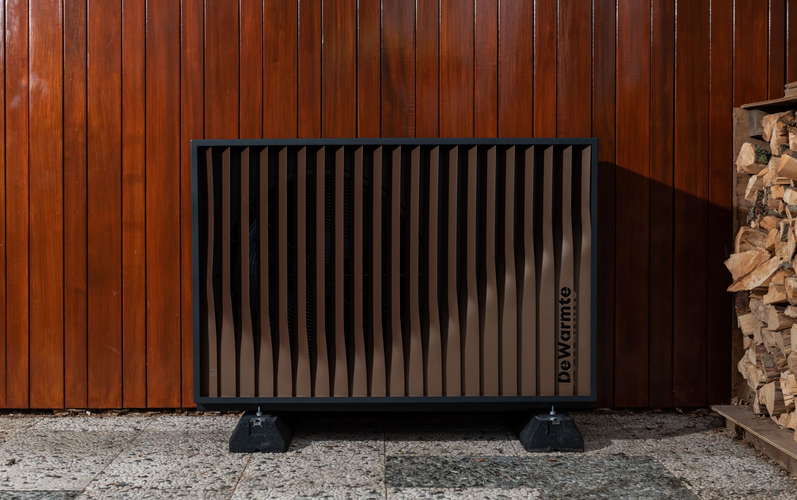 Pomp MP 在外观设计上突破传统热泵设备“工业箱体”的刻板印象,采用整体一体化金属外壳与流畅的圆角曲面,呈现出类似家电产品的亲和形态。正面以简洁的大面积面板为主,减少视觉分割,使设备在建筑外立面或室内空间中更具整体感与秩序感。通风开孔与功能结构被有序隐藏或整合于造型之中,既满足散热需求,又避免杂乱外露。比例控制上强调稳重与低重心,使产品具有可靠与安静的视觉感受。整体设计通过“去工业化”的形式语言,将原本技术导向的设备转化为更易被家庭环境接受的视觉存在。