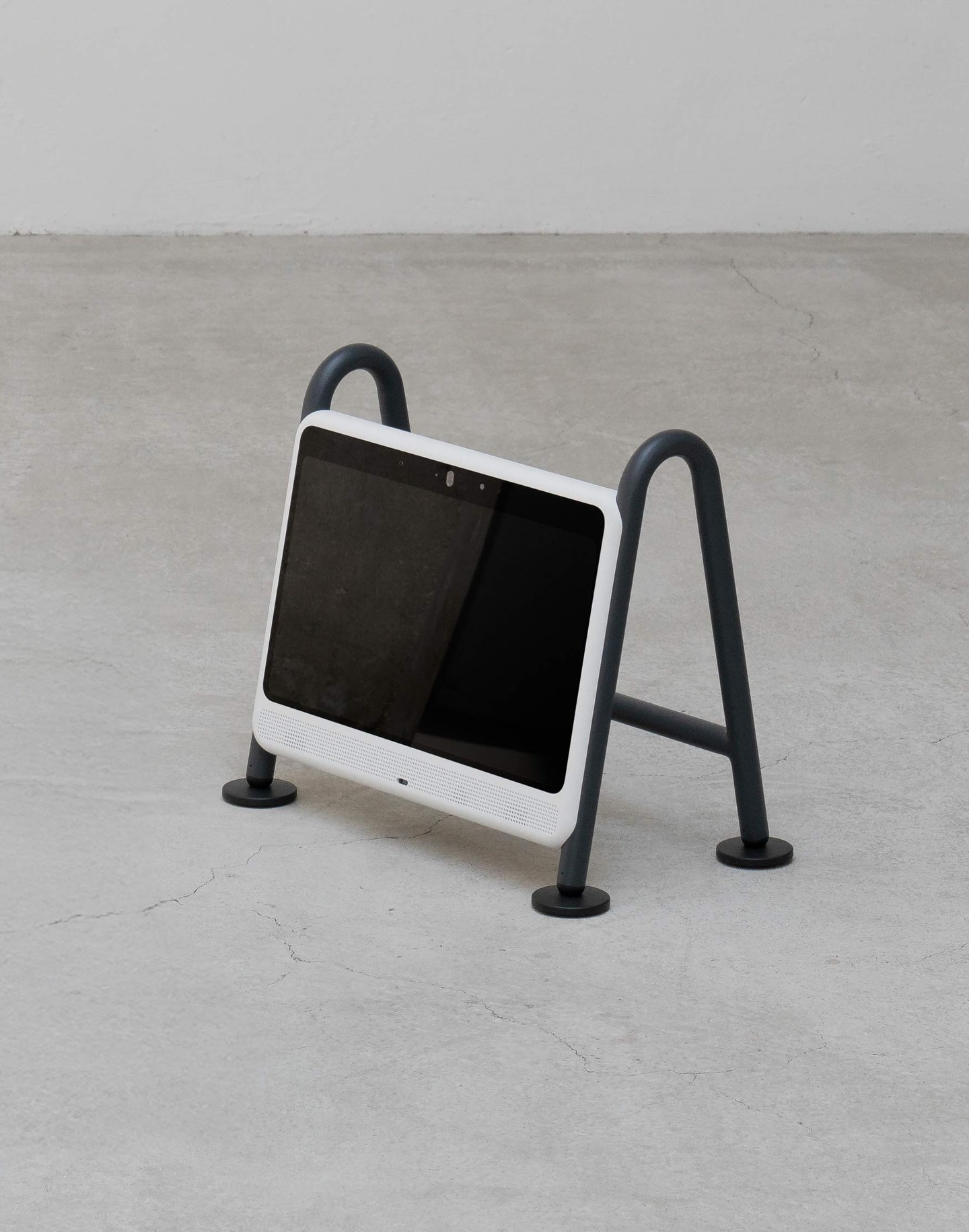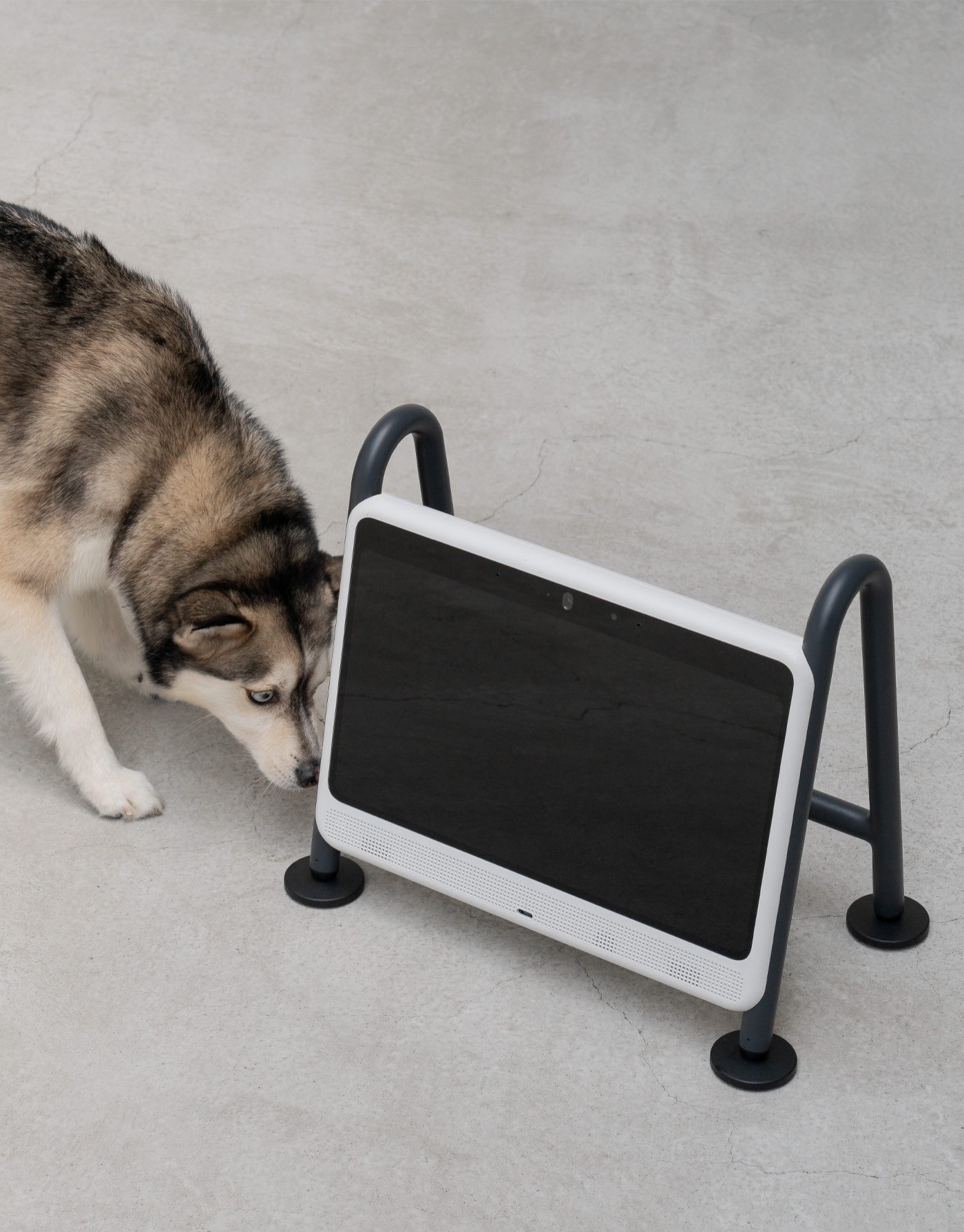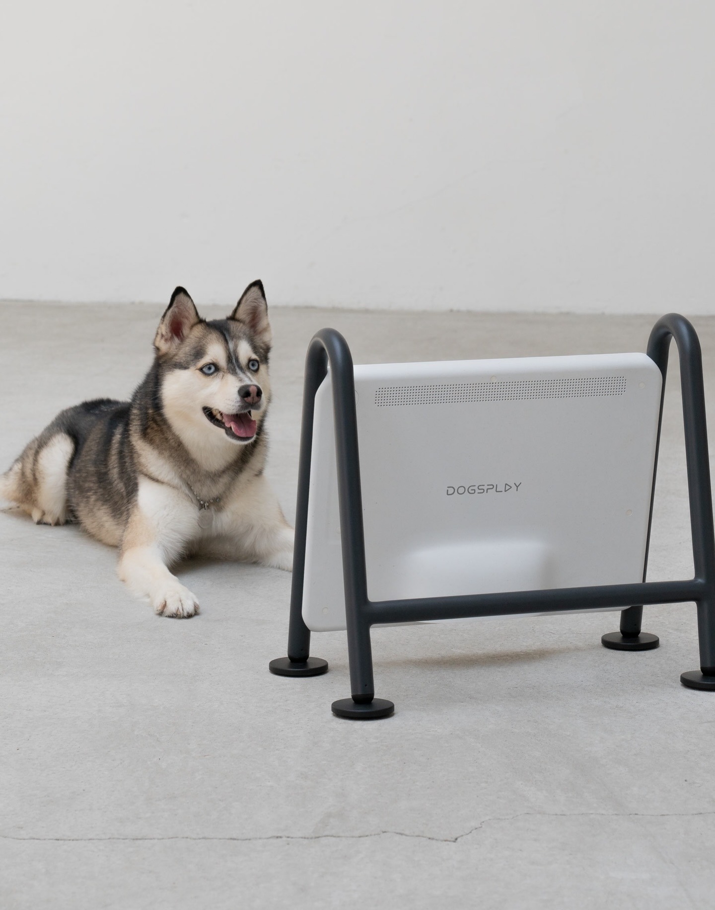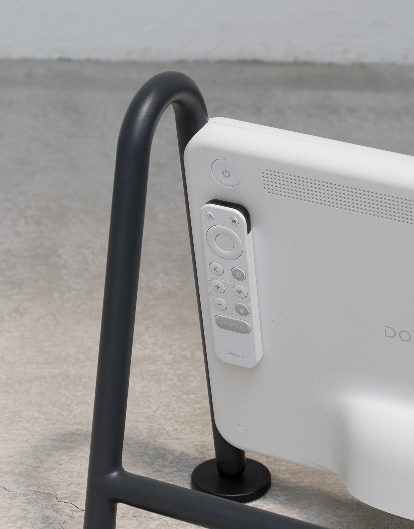 Dogsplay 是由 Sunnywavetech 团队设计的一款专为狗狗打造的电视,其核心理念是 “让宠物娱乐设备像一件自然的家居摆件,而不是突兀的塑料盒子” 。机身采用再生塑料与贝壳混合材质,呈现出微妙的斑点纹理,搭配金属支腿与底部柔软的硅胶脚垫,脚垫上饰有爪印图案。整体造型活泼而不失沉稳,能够融入多种家居风格,旨在为独自在家的狗狗提供视觉与听觉刺激,缓解分离焦虑,同时兼顾主人的审美需求。
